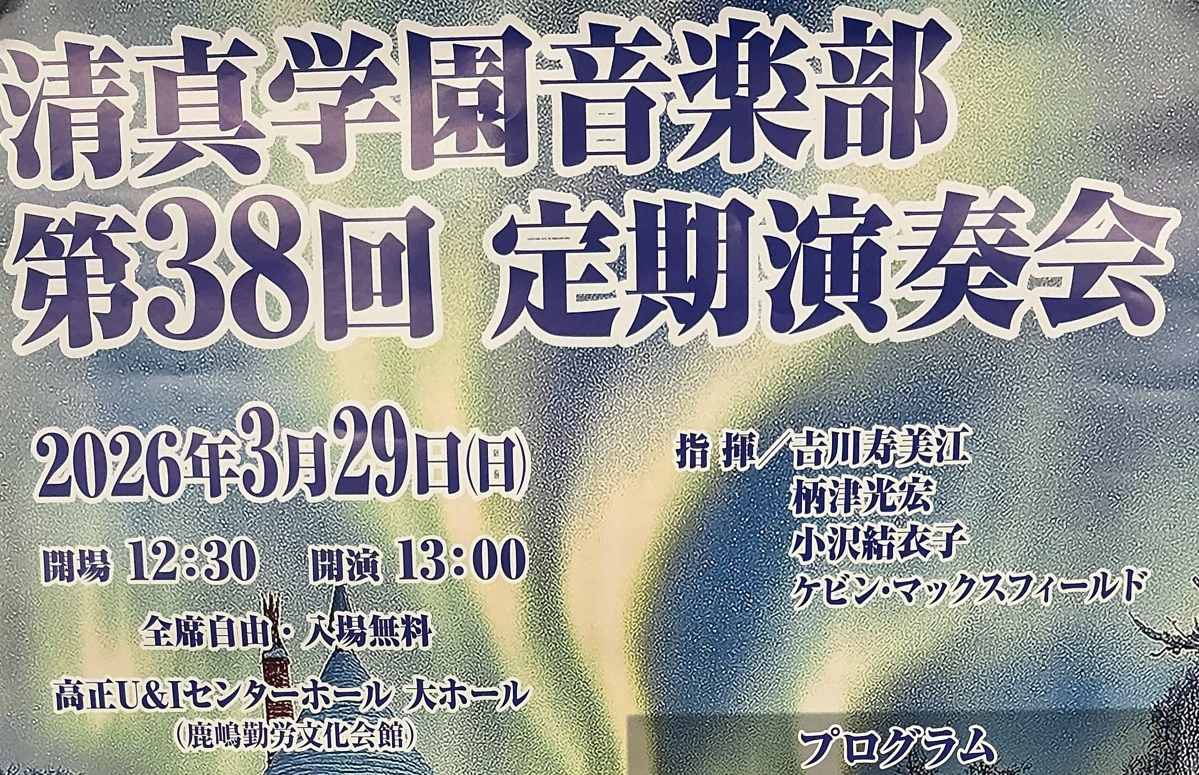 第38回 音楽部定期演奏会(3月29日 12:30開場 13:00開演 高正U&Iセンターホール) New!
