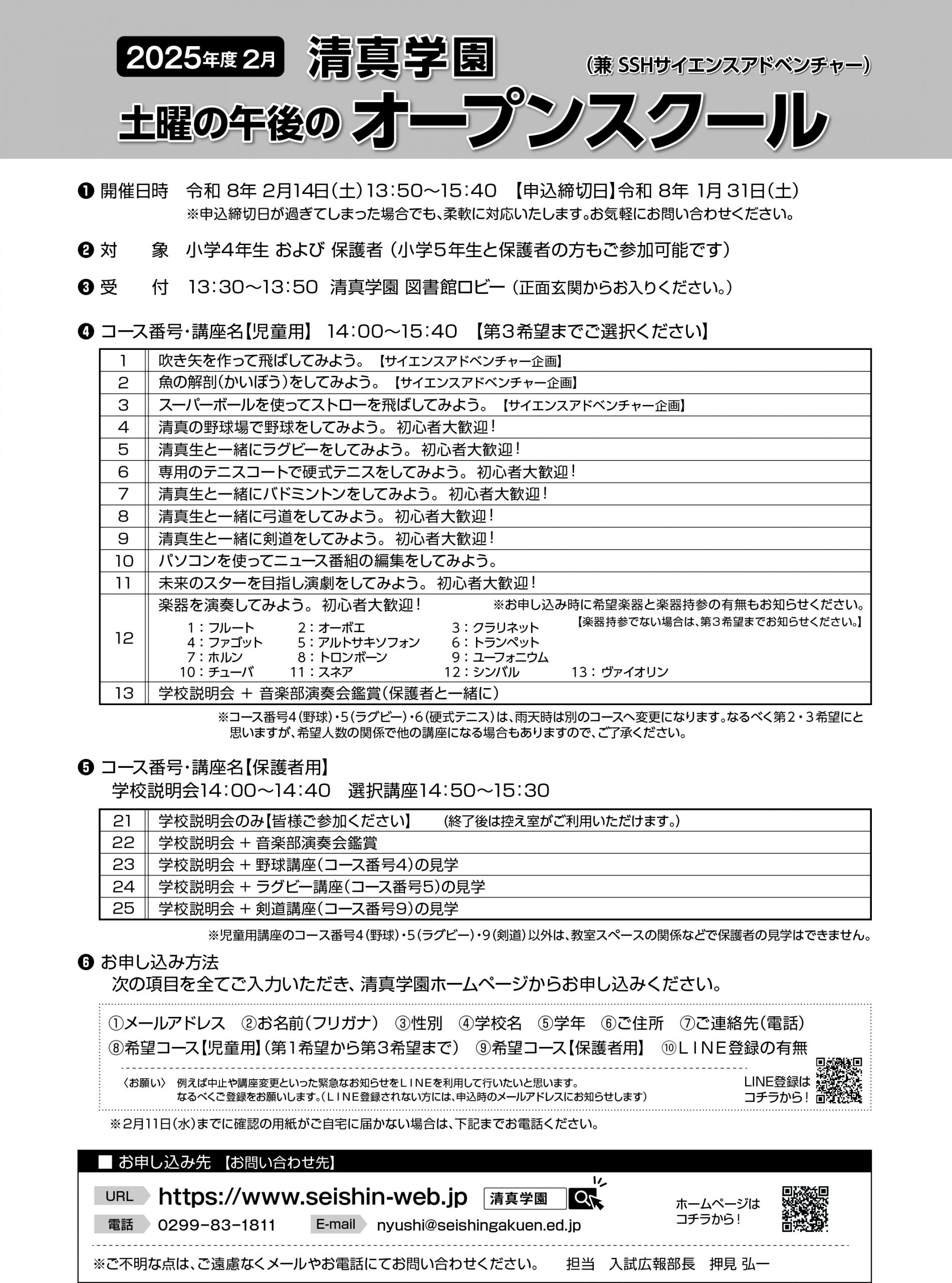 また、講座や学校説明会は、小学4年生向けのものになりますが、小学5年生の方もご参加可能です。こちらもお気軽にご参加いただければと思います。